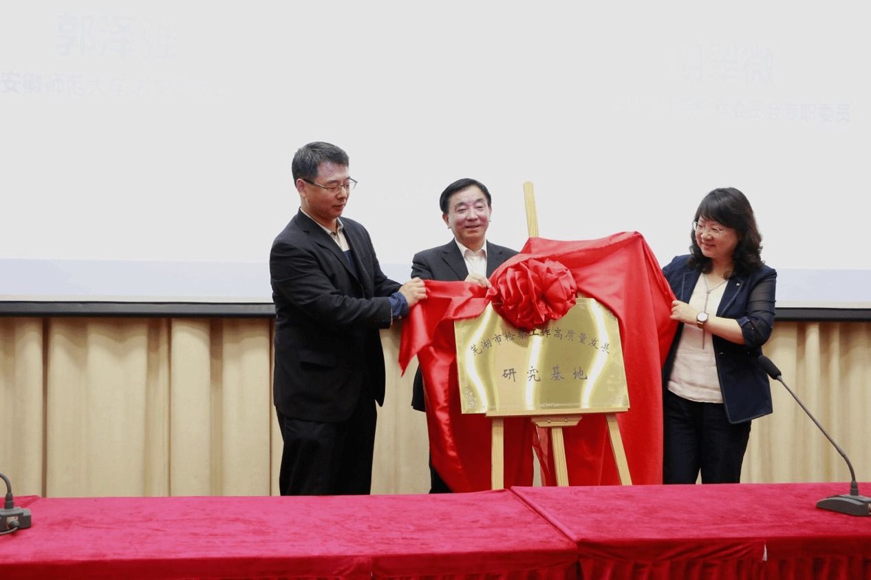 会后,法学院院长郭泽强、中国法律逻辑专业委员会副会长柴学友、芜湖市人民检察院专委胡翠微共同为“芜湖市检察工作高质量发展研究基地”举行揭牌仪式。