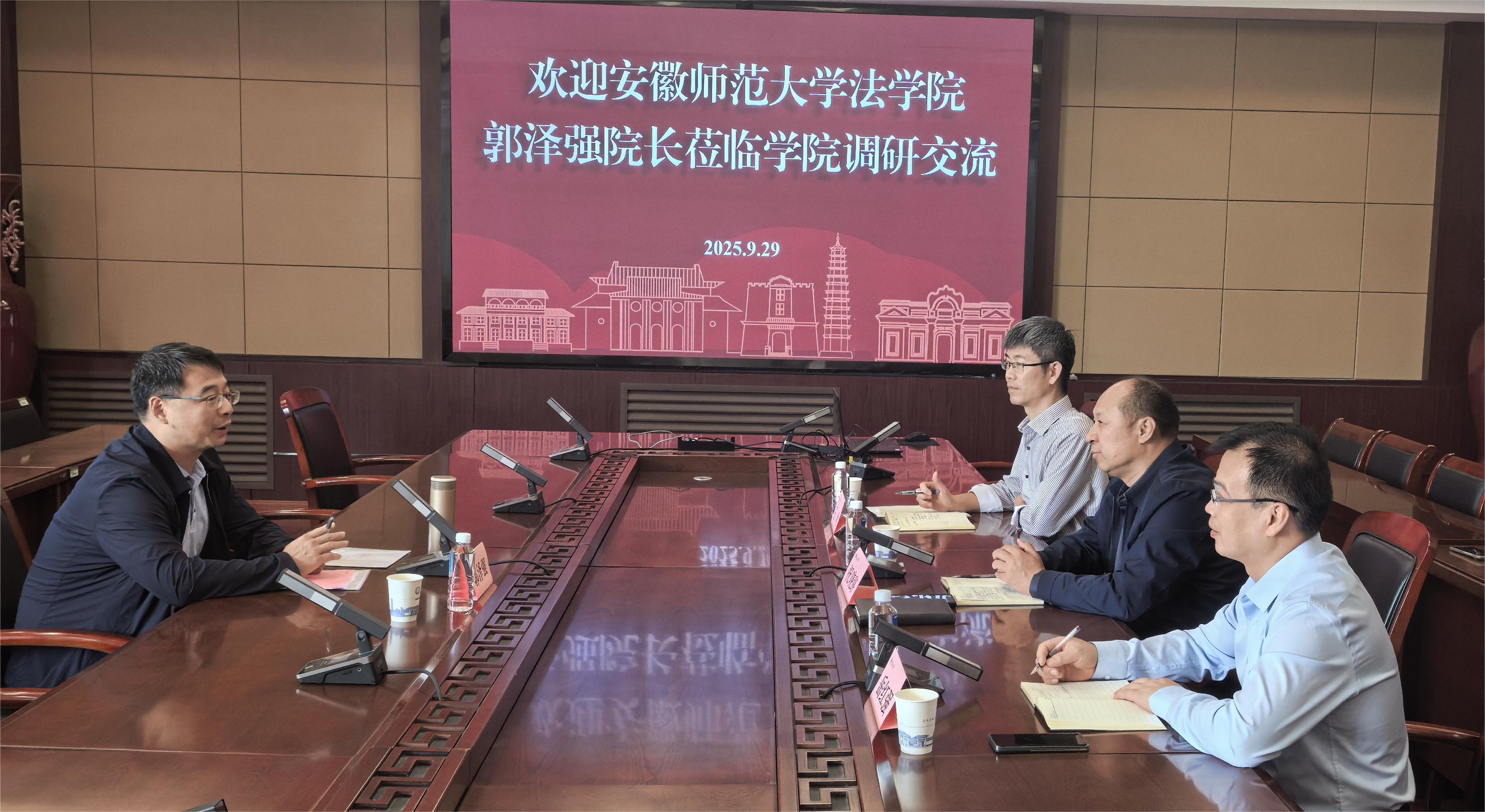 为深化法学教育改革,借鉴兄弟院校先进经验,提升人才培养质量与学科建设水平,近日,安徽师范大学法学院院长郭泽强教授率队赴河南省郑州市与开封市,先后对河南财经政法大学法学部、郑州大学法学院与河南大学法学院进行了深度调研与交流。本次调研活动以“对标先进、拓宽思路、深化合作”为主题,围绕民商法学与刑法学以及纪检监察学科建设与师资队伍建设、课程体系改革以及高素质法治人才培养等核心议题开展深入探讨。