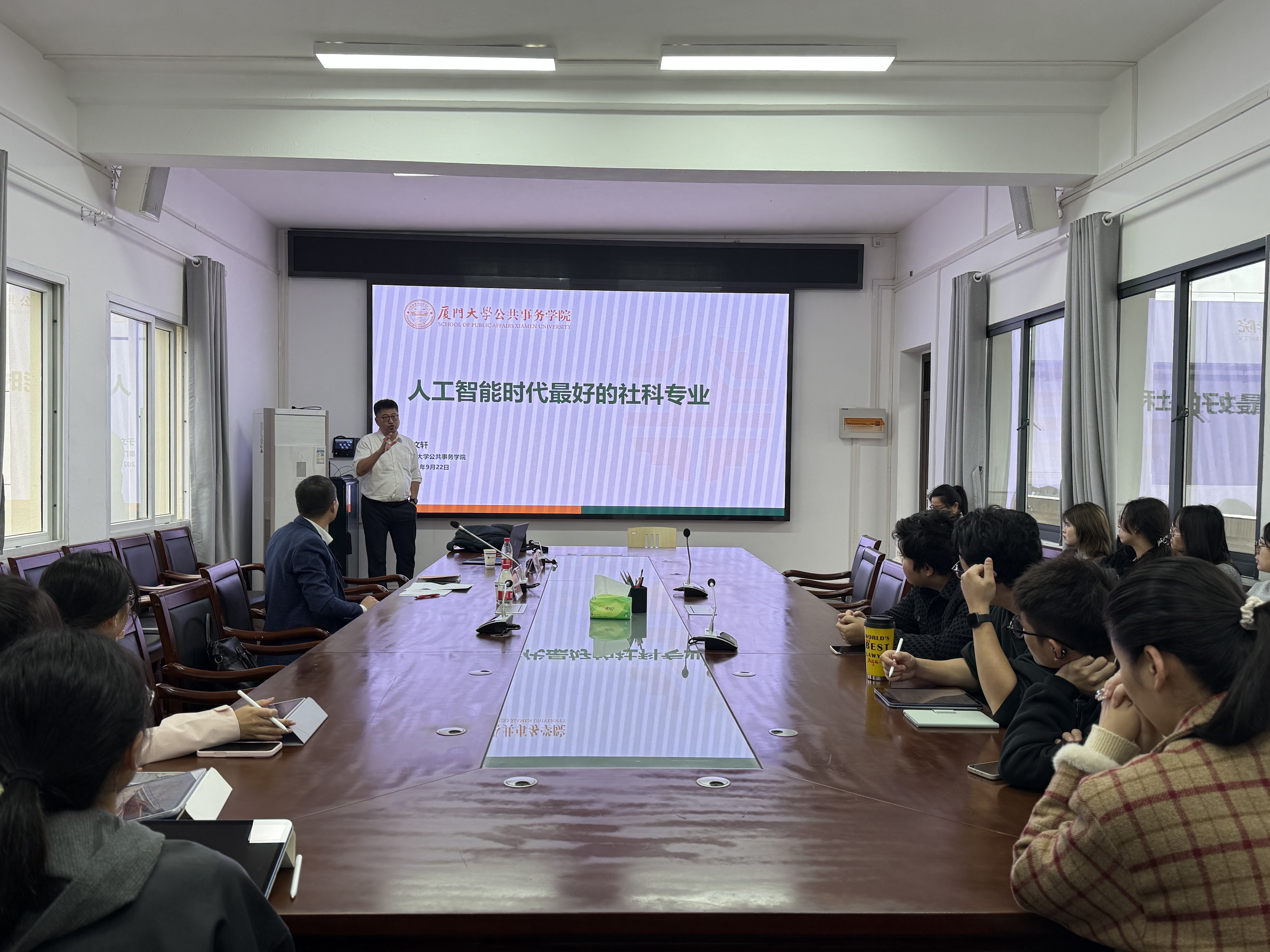 9日下午,厦门大学公共事务学院院长于文轩教授以《公共管理:人工智能时代最好的社科专业》为题,先澄清人文与社科的本质差异,强调社科研究的方法导向属性,明确公共管理与行政管理的学科边界,还解读了国务院学位办对相关专业的官方界定。他指出,国内公共管理专业曾存在发展失序问题,当前正处于“正本清源”阶段,而该专业作为培养“通才”的载体,核心目标是培育适应AI时代的全球公共部门领导者,建议学生广泛涉猎知识并融会贯通。法学院副教授陈鹏担任与谈人,与师生共同研讨对学科价值的理解。