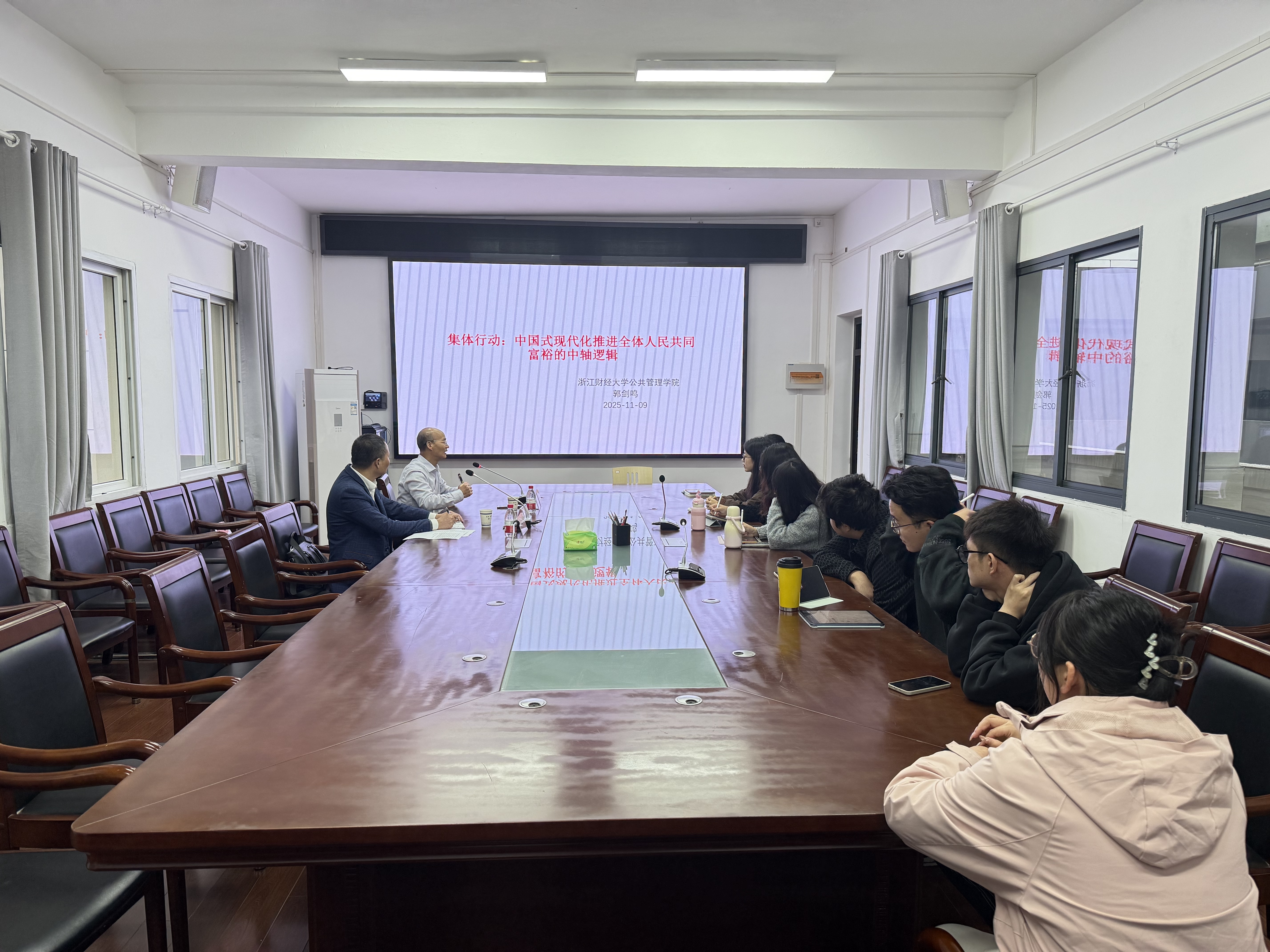 “集体行动与共同富裕”专题讲座同步开展。浙江财经大学公共管理学院郭剑鸣教授指出,中国式现代化进程中的共同富裕需以集体行动为支撑,这是应对复杂国情与发展挑战的必然选择。他分析世界典型现代化模式的共富成效,从“树立正确财富观保障机会平等、以创新创业群体为中轴带动发展、建立互惠共享机制实现可持续共享”三个层面,构建推进共同富裕的集体行动框架。法学院副院长陈银珠副教授在与谈中肯定该研究,认为其为理解共同富裕提供了新视角。