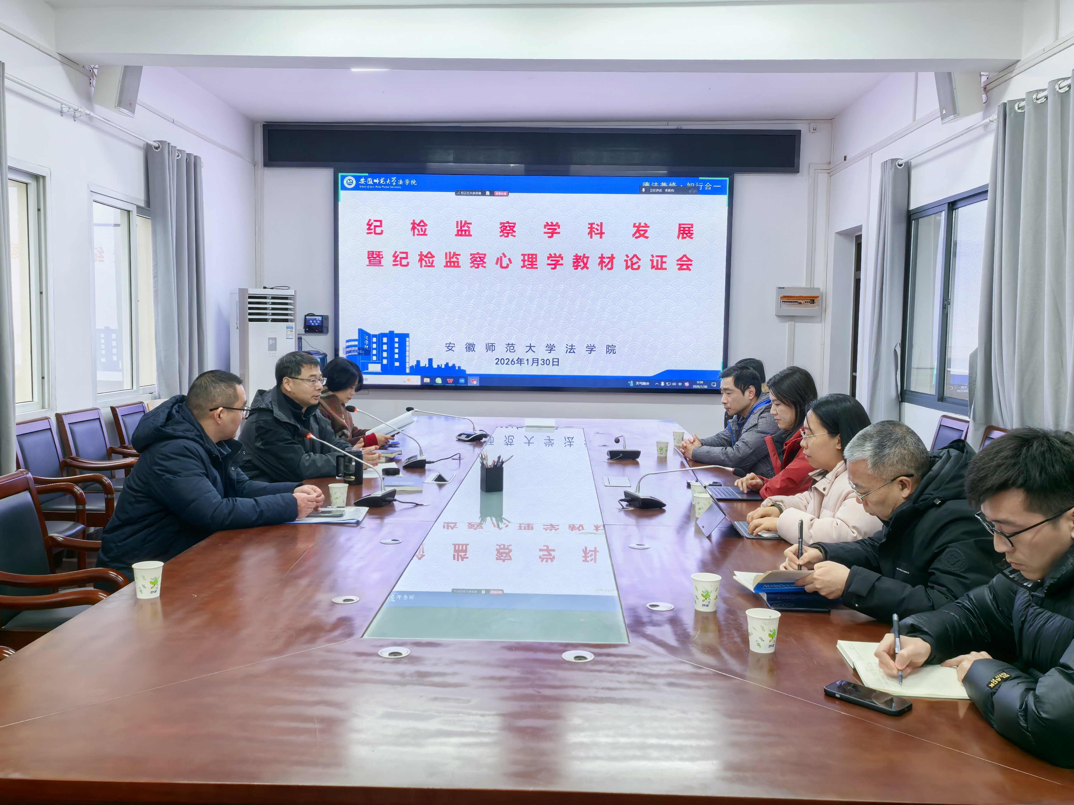 1月30日,安徽师范大学纪检监察学科发展暨《纪检监察心理学》教材论证会顺利召开。法学院(纪检监察学院)院长郭泽强教授主持会议,汪祚军、付梅、朱启友等校内外专家学者参会,围绕学科建设与教材编写展开深入研讨。