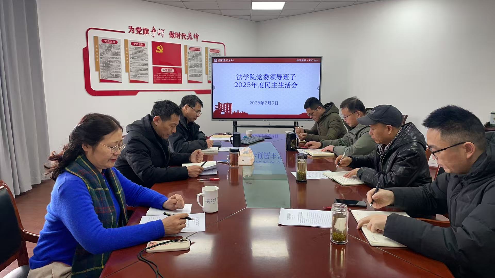 2026年2月9日上午,法学院于411会议室召开党委领导班子2025年度民主生活会。会议由院党委书记张师帅主持,学院党员领导干部参加,非中共党员的领导干部列席会议。