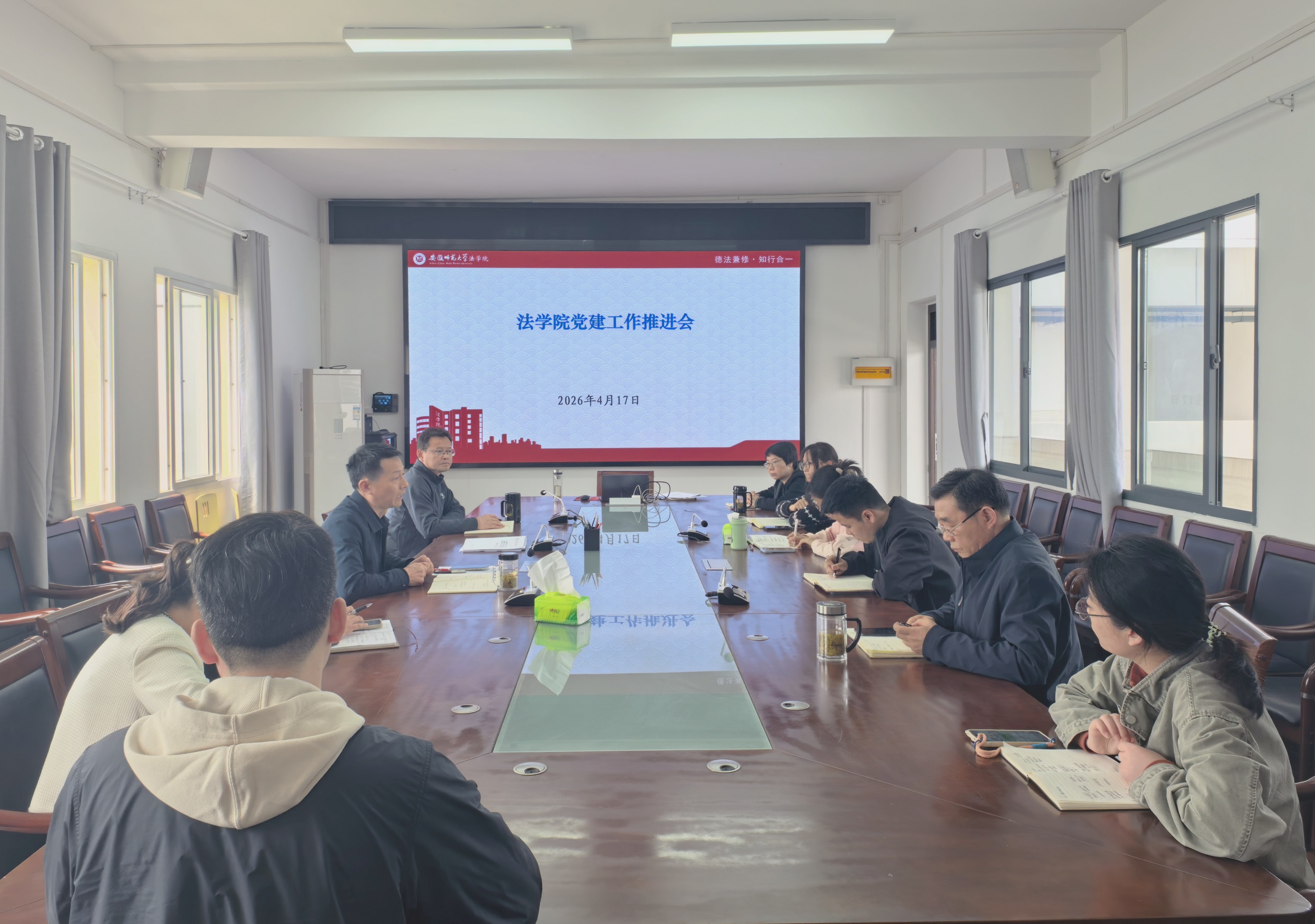 4月17日上午,法学院于515会议室召开党建工作推进会。会议由院党委书记张师帅主持,院党委副书记张玉新、学生党支部书记、辅导员参加会议。