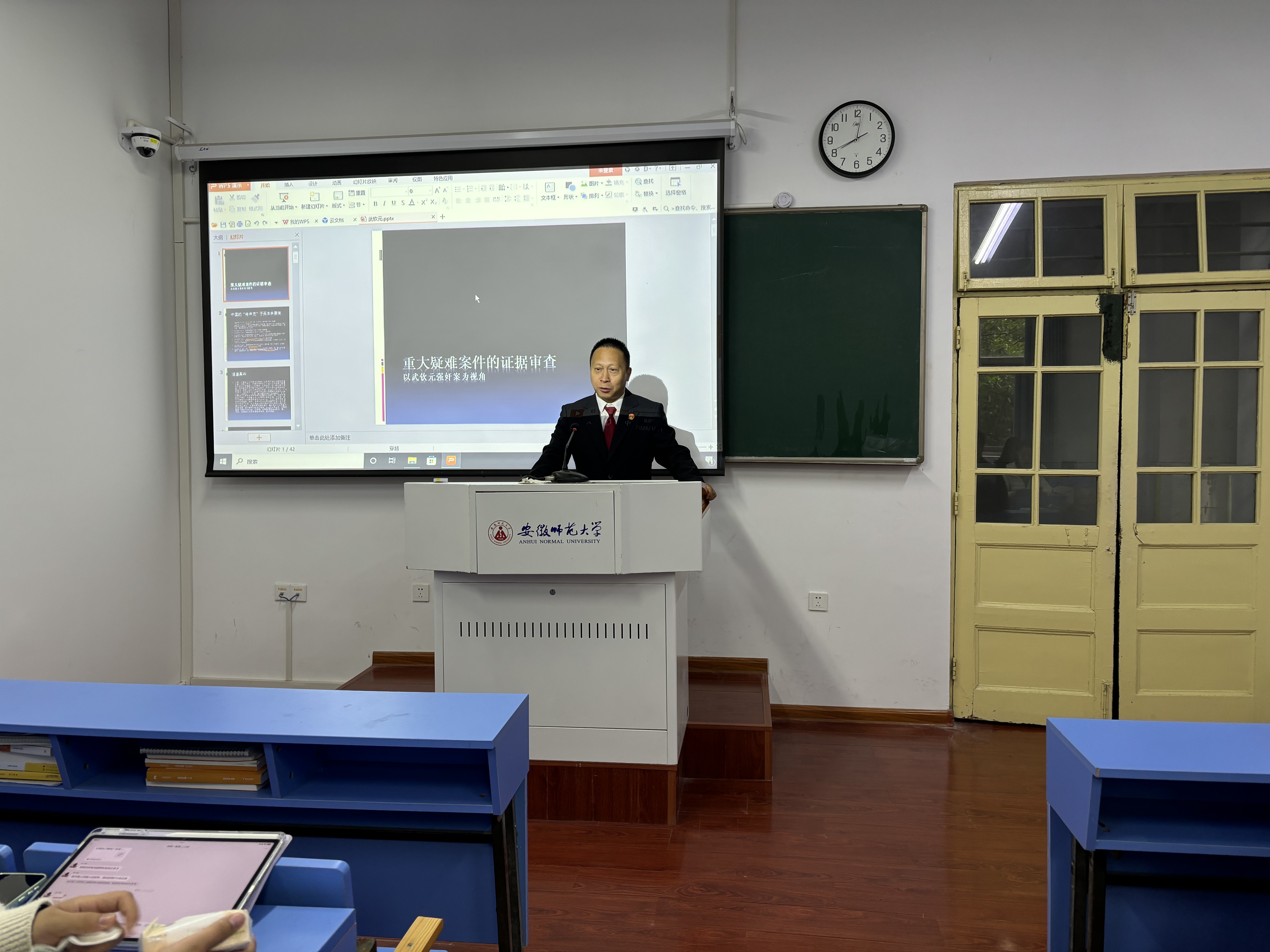 4月21日上午,安徽师范大学法学院“卓越司法创新课程系列活动(第二期)”在赭山校区教学楼1209教室如期举行。本次活动特邀芜湖鸠江区人民法院党组书记、院长、三级高级法官邓甲楷担任主讲人,为2024级卓越司法班学生带来一场题为《重大疑难案件的证据审查——以武某强奸案为视角》的专题讲座。讲座由郭泽强教授主持。