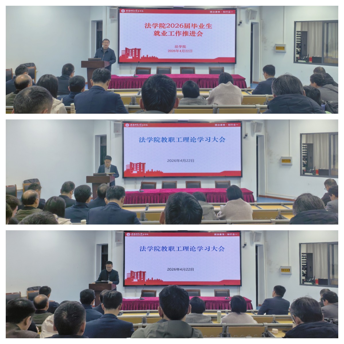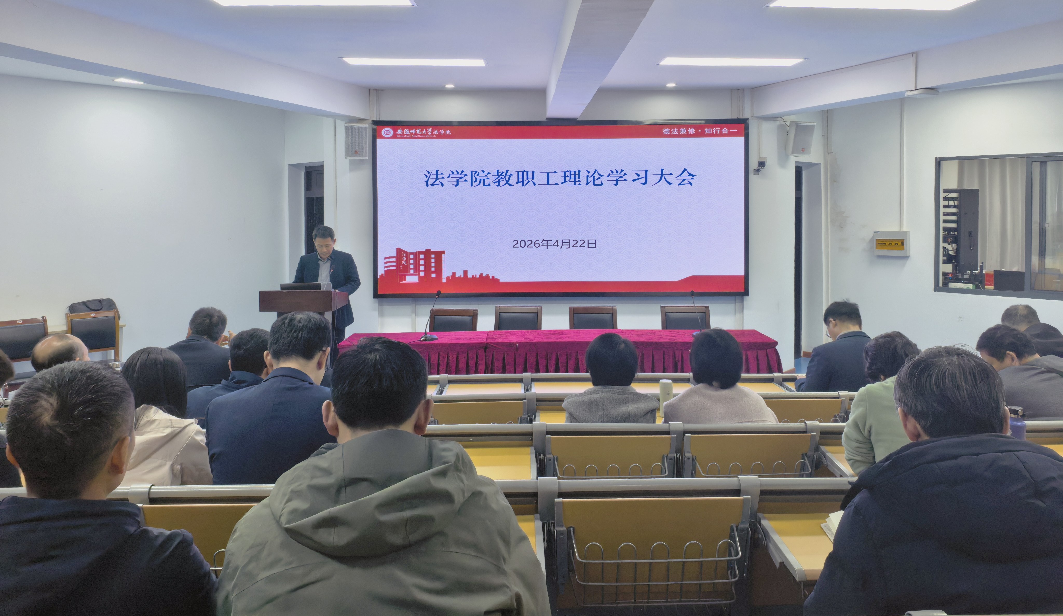 4月22日下午,法学院于214会议室召开教职工理论学习大会。会议由院党委书记张师帅主持,全体教职工参加。