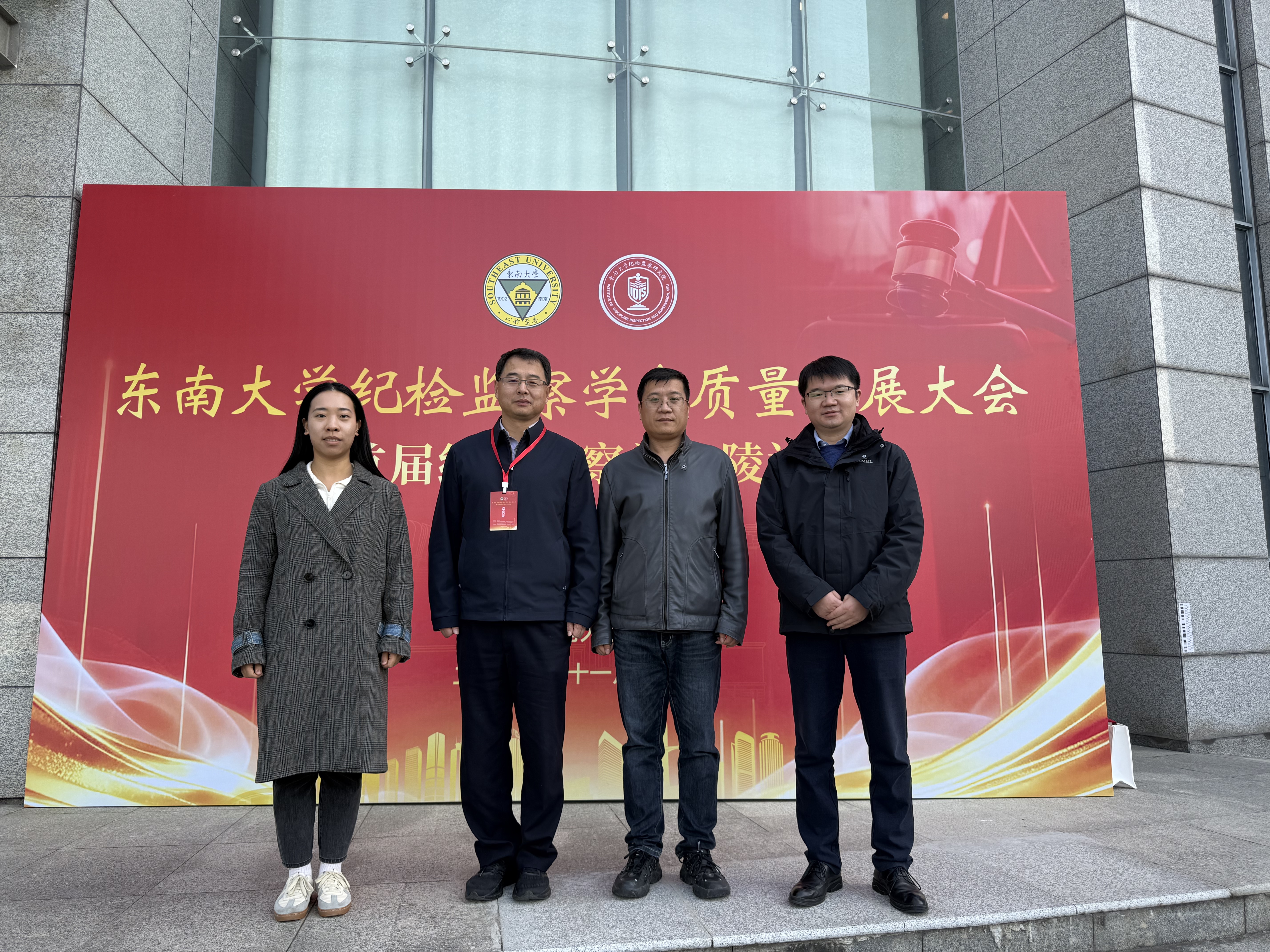 11月30日,东南大学纪检监察学高质量发展大会暨首届纪检监察学金陵论坛在九龙湖校区成功举办。东南大学党委书记邬小撑,江苏省纪委副书记、省监察委员会副主任黄楚中等出席会议。本次会议共有来自中国纪检监察学院、江苏省纪委监委有关同志,驻苏部属高校及成立纪检监察机构高校代表、纪检监察学领域专家学者、学校职能部门代表、全体纪检监察及巡视干部、高校师生代表近200人出席。中国犯罪学会副会长、我院院长郭泽强教授,赵军锋教授、胡悦博士、刘冠合博士和纪检监察方向研究生受邀参会。