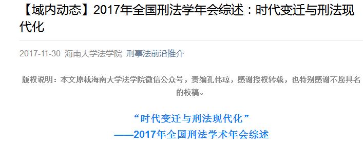 2017年11月26日,由中国刑法学研究会主办,海南大学、海南省高级人民法院、海南省人民检察院、海南省法学会承办的2017年全国刑法学术年会在海口举行,本次年会主题为“时代变迁与刑法现代化”。有来自全国人大常委会、最高人民法院、最高人民检察院等机关和北京大学、中国人民大学、北京师范大学等高等院校、科研机构的专家学者300余人参加会议。我院彭凤莲教授、李光宇副教授受邀参加会议。