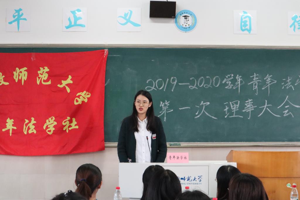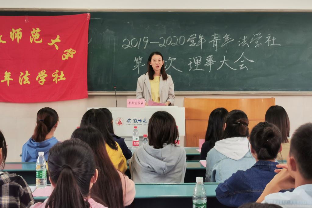 10月20日下午,青年法学社2019-2020年度第一次理事大会在安徽师范大学花津校区行知楼2020504教室召开。青年法学社指导老师储梦凡、青年法学社会长谢歆悦、副会长张露、团委社团工作委员许芳芳、外交与国际事务研究协会会长王美然、职业能力发展研究会副会长杨带娣,以及青年法学社各部门部长、理事出席此次大会。大会由青年法学社活动部理事谢永毅主持。