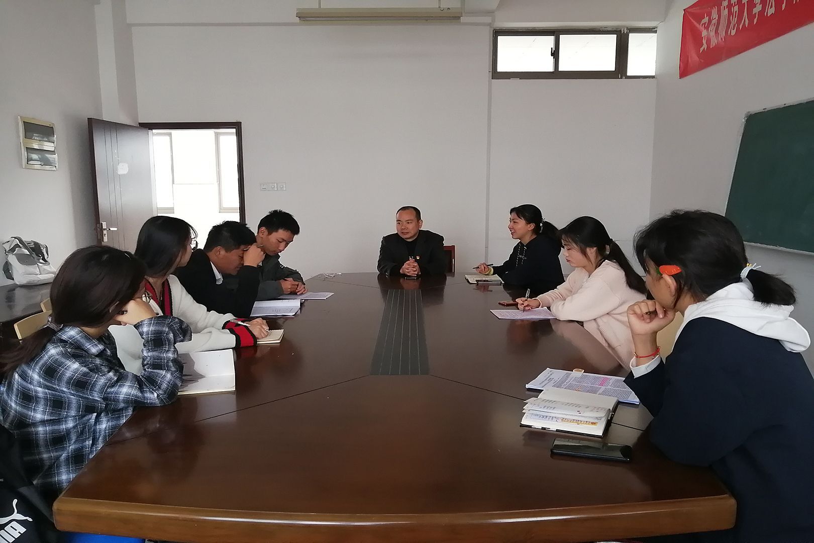 11月13日下午,法学院于院行政楼508、509举办了本学期第十一周教师接待日。本次教师接待日由王宇松、陈鹏两位老师为同学们答疑解惑。