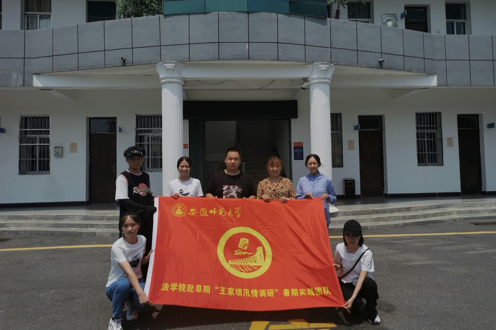 8月1日至10日安徽师范大学法学院赴阜阳市阜南县王家坝镇关于防汛情况及汛情影响暑期实践团队开展了为期十天的汛情调研。团队成员共九人,其中线下调研5人,分别是,兰澜、张莉、刘涵、李若男、刘元俊,线上调研4人,分别是王锦、张家荟、刘文远、杜鑫雨。