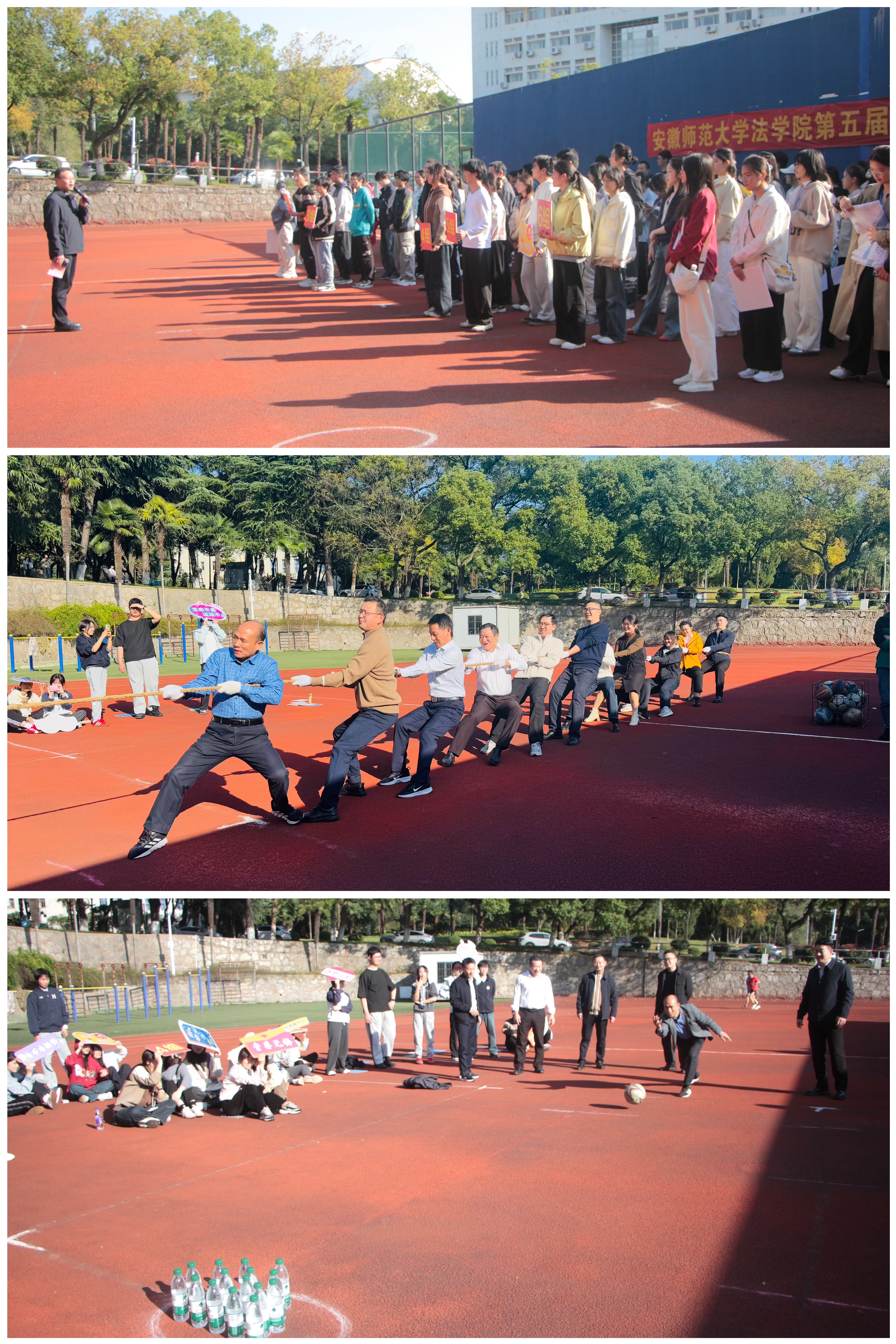 协同育人:深化师生联动,厚植和谐育人生态。法学院以特色活动为纽带,推动师生双向互动,构建和谐共融的育人氛围。11月12日,举办第五届师生趣味运动会,设置拔河、趣味保龄球、颠球过绳等兼具竞技性与协作性的项目,党委书记张师帅、党委副书记张玉新等领导老师与学生代表共同参与。师生在协作拼搏中释放压力、增进情谊,以体育精神厚植集体归属感,让心理健康教育在轻松愉悦的氛围中落地生根。这种“亦师亦友、协同成长”的互动模式,不仅拉近了师生距离,更将心理关怀融入日常,为心育工作注入了持久活力。