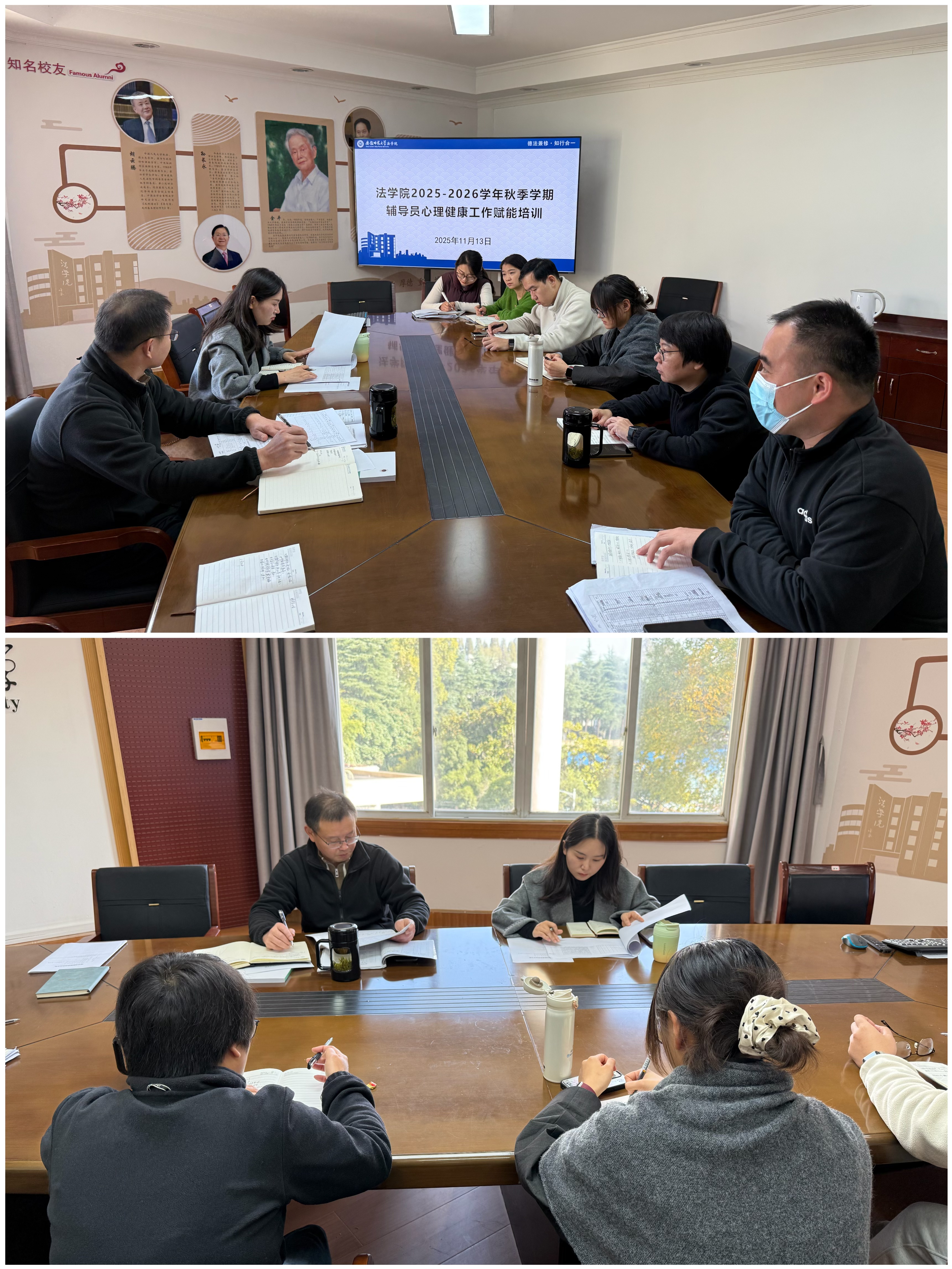 骨干筑基:强化队伍建设,夯实心育工作根基。法学院高度重视心理健康工作队伍专业化建设,通过分层培训构建“辅导员+学生骨干”的双轨支撑体系。11月13日,学院开展辅导员心理健康工作能力培训,围绕学生心理健康工作开展专题研讨,提升辅导员精准帮扶能力;10月20日,举办“10·25”心理健康月学生骨干心理培训会,特邀2023级社会工作专业心理委员王悦为2024级、2025级心理委员分享经验。培训结合大学生心理发展规律与典型案例,系统阐释心理委员角色认知、职责内涵,传授倾听共情、需求识别等核心技巧,同时分享自我调适经验,有效提升了工作队伍的专业素养,为学院心理健康工作高质量开展筑牢人才支撑。
