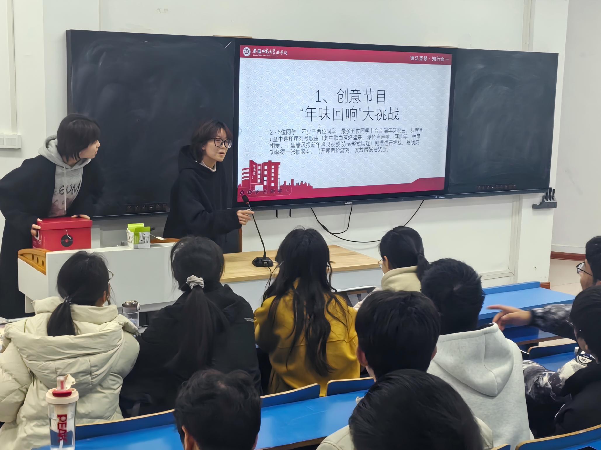 活动开篇的“新年联欢·万象更新”环节,瞬间点燃现场氛围。几位同学领衔登台,唱响经典年味歌曲,熟悉的旋律勾起全场共鸣,暖意融融。随后的“年味回响”大挑战中,大家围绕新年习俗、经典年歌歌词等趣味题目展开抢答,反应迅速、妙语连珠,现场欢声笑语不断,年味愈发浓厚。