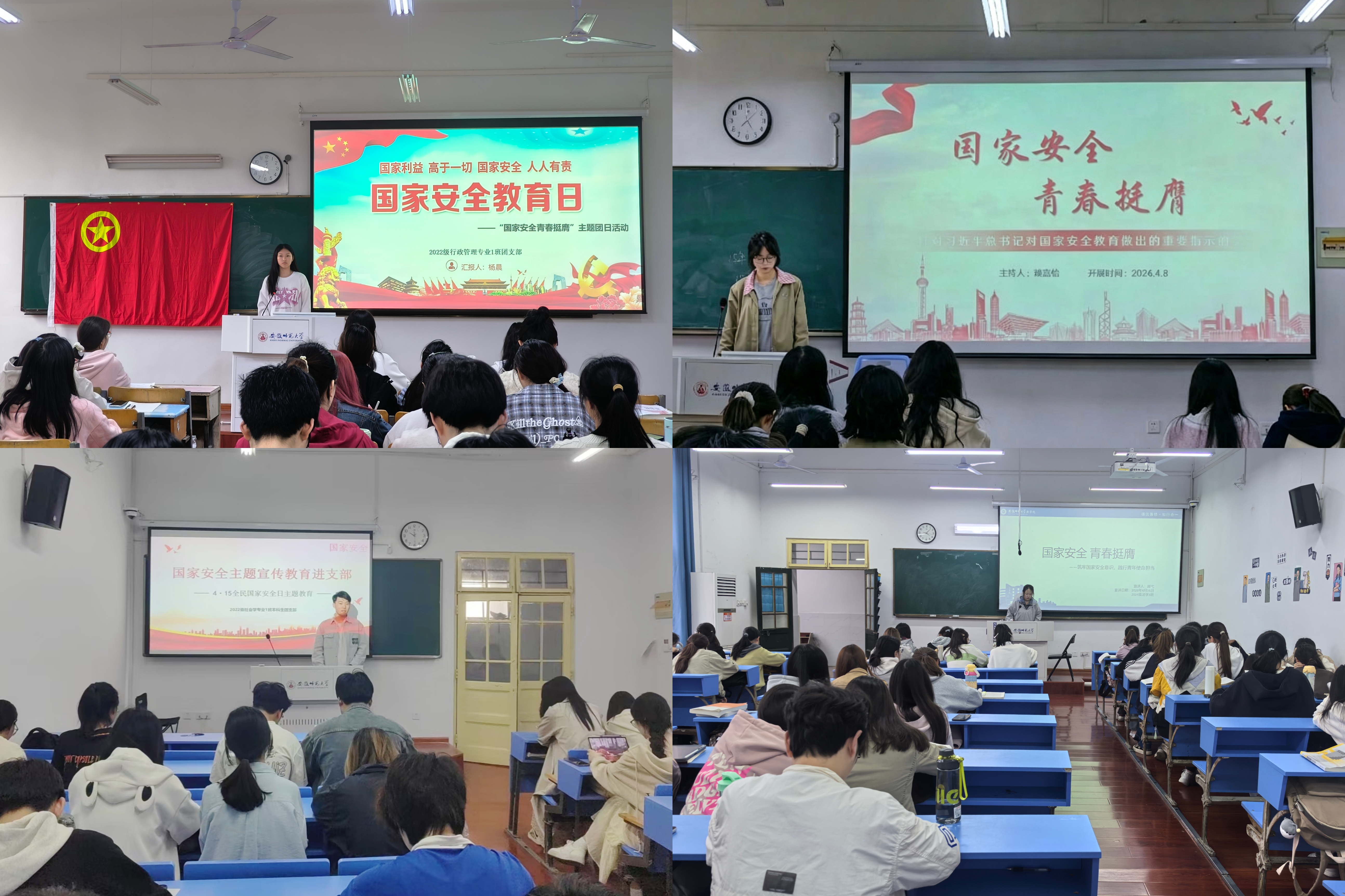 青春践行显担当。在交流分享环节,同学们结合自身学习生活实际,畅谈心得体会。2022级行政管理1班组织观看国家安全宣传教育视频后,同学们一致表示要将爱国情怀转化为护安行动。2024级社会工作1班团支部在活动最后发出倡议,号召全体同学树立正确的国家安全观,争做国家安全的坚定捍卫者、积极传播者和自觉践行者。
