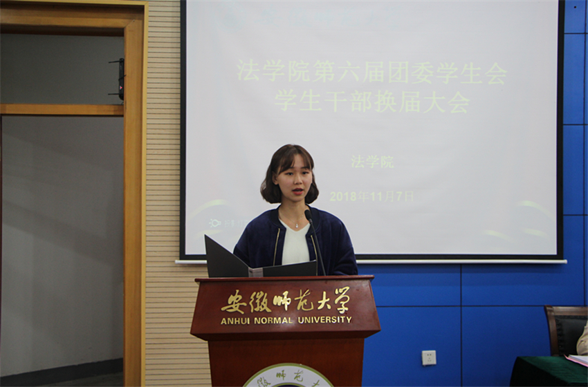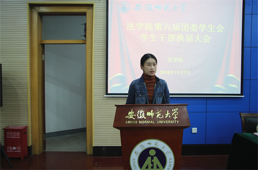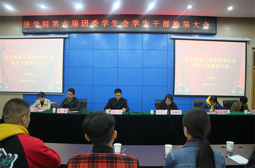 11月7日下午,法学院于第三报告厅举办第六届团委学生会学生干部换届大会。院党委副书记王少仁、院团委书记王虹圆、18级法学专业辅导员王琳、18级行政管理专业辅导员冯晟、18级专升本辅导员黄世凯出席会议,第五届团委学生会学生干部代表、第六届团委学生会全体成员参与其中,王虹圆主持会议。
