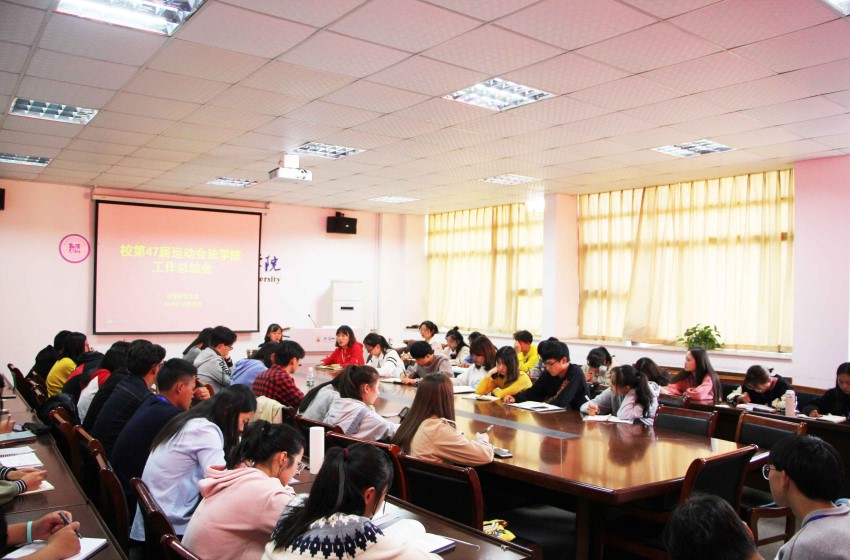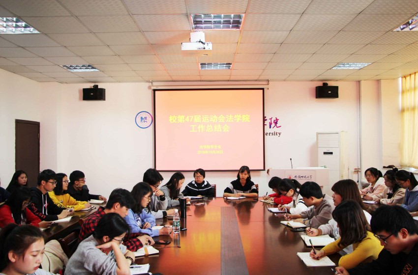 10月28日下午,法学院在行政楼四楼会议室召开校第47届田径运动会工作总结大会。院团委书记王虹圆出席会议,院学生会全体成员共同参加。此次会议由院学生会主席张沥丹主持,