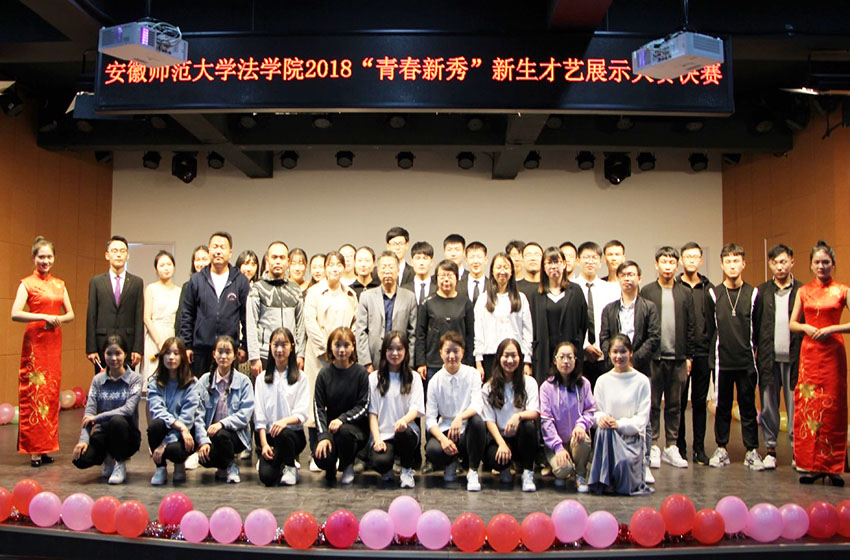 畅享青春,以梦笃行。为了给新生提供展示自我的舞台,彰显青春活力与个性,10月13日晚,法学院在校团委多功能报告厅举办“青春新秀”新生才艺大赛总决赛。法学院团委书记王虹圆、院团委副书记陈兴宇、学院教师朱启友、2016级法学专业辅导员储梦凡、2017级行政管理专业辅导员赵义丹、2018级法学专业辅导员王琳、2018级行政管理专业辅导员冯晟以及法学院第六届学生会主席团受邀出席并担任本次大赛的评委。