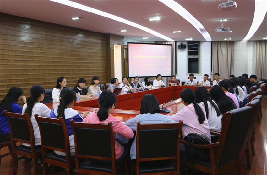 9月29日,法学院团委于会议中心举办法学院团学招新反馈交流会,院团委书记王虹圆、院学生会主席团全体成员出席会议,部分参与团学竞选的18级新生参与其中,会议由王虹圆主持。