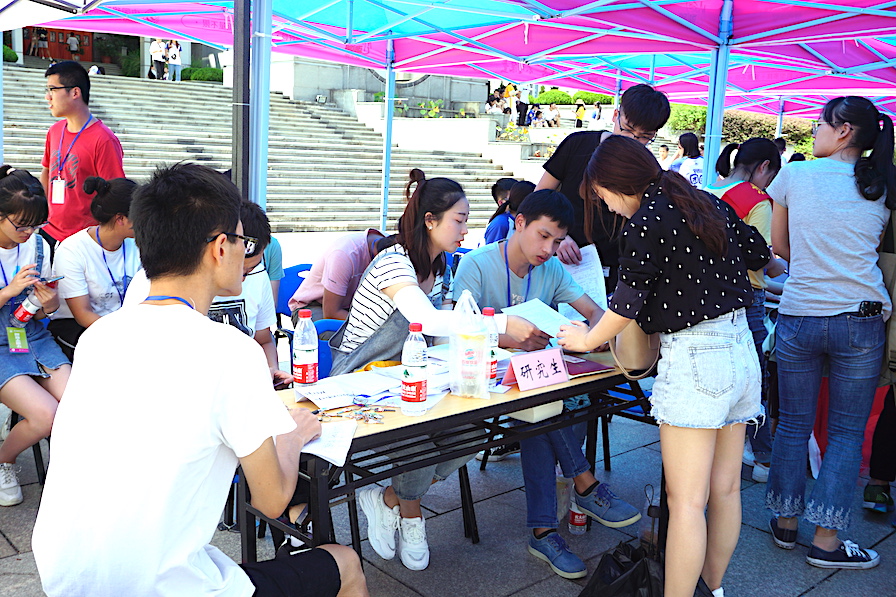 9月8日清晨,研究生会成员戴着工作牌早早地到达了图书馆东门前,怀着满腔的热血,坚持以严纪律、高标准来严格要求自己,奔跑在迎新工作的前线。伴随着新生的陆续到来,迎新工作者忙碌的身影穿梭于人群当中,细心而又热情地为远道而来的新生和家长介绍学校的相关情况及入学时的注意事项,及时为他们答疑解惑。从查看身份证、毕业证、录取通知书到发放宿舍钥匙、饭卡再到学生签字认证、加班级群等一系列的工作都在有条不紊的进行着,为新生提供了高效、便捷的服务。此外,还有学校各位领导亲临迎新工作地点进行指导,温暖又关怀地问候各位工作者,为迎新工作又增添了一道绚丽的色彩。