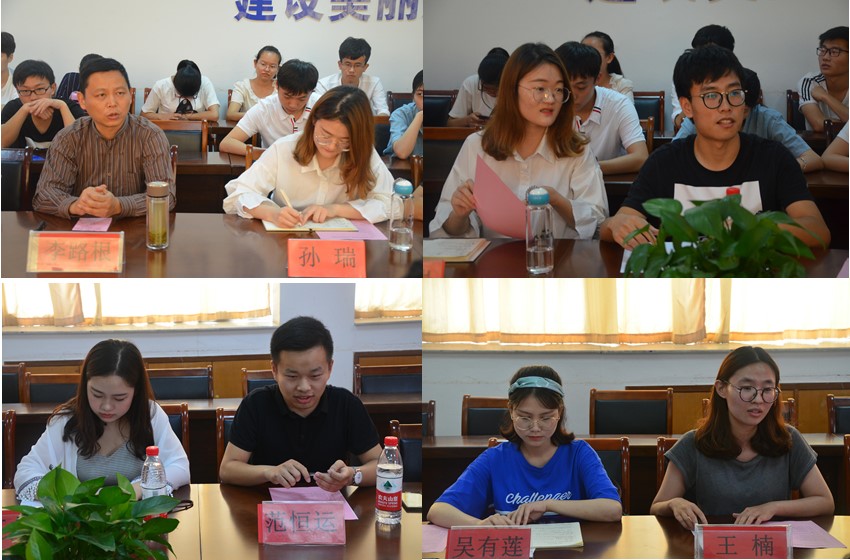 本次考研交流会围绕考研流程、考研目标以及考研复习等问题展开探讨交流。活动伊始,王楠分享了自己的择校经验和复习计划,强调考研复习要有明确的目标,拥有自己的想法,不随波逐流;吴有莲分享了自己的考研心得,强调在面对考研学校和专业的选择时,兴趣是选择考研方向最重要的因素之一,并告诫同学们要摆正心态,夯实基础,关注时政热点,有步骤,有计划地推进考研复习;范恒运以自己的切身经历向同学们讲述了南京大学复试的宝贵经验,讲述了面试的相关技巧以及在调剂过程中遇到的难题,也分享了自己的复习方法;王文文从学业成绩的平均分、雅思、科研能力、以及实习能力四个方面对海外留学进行了分析,着重强调在雅思学习方面,多背单词积累词汇量,多看英文书籍、周刊、电影电视等,注重平时练习。