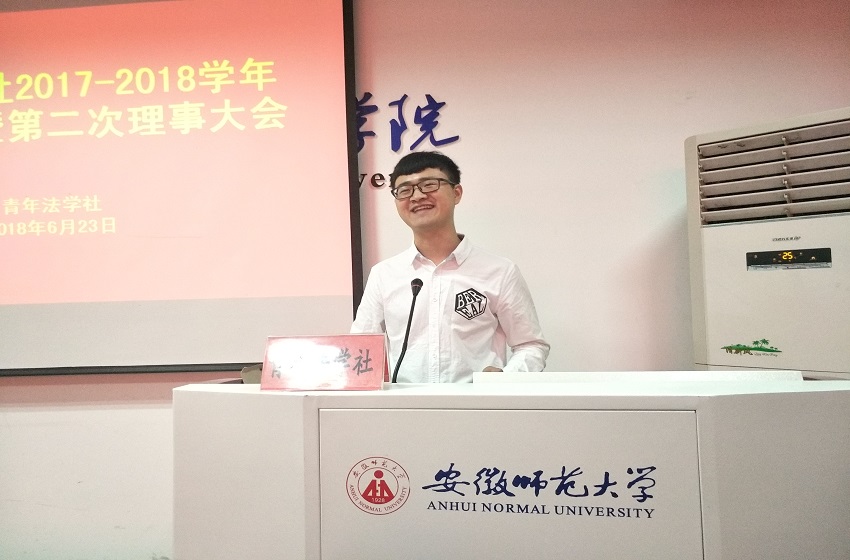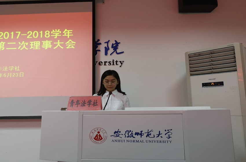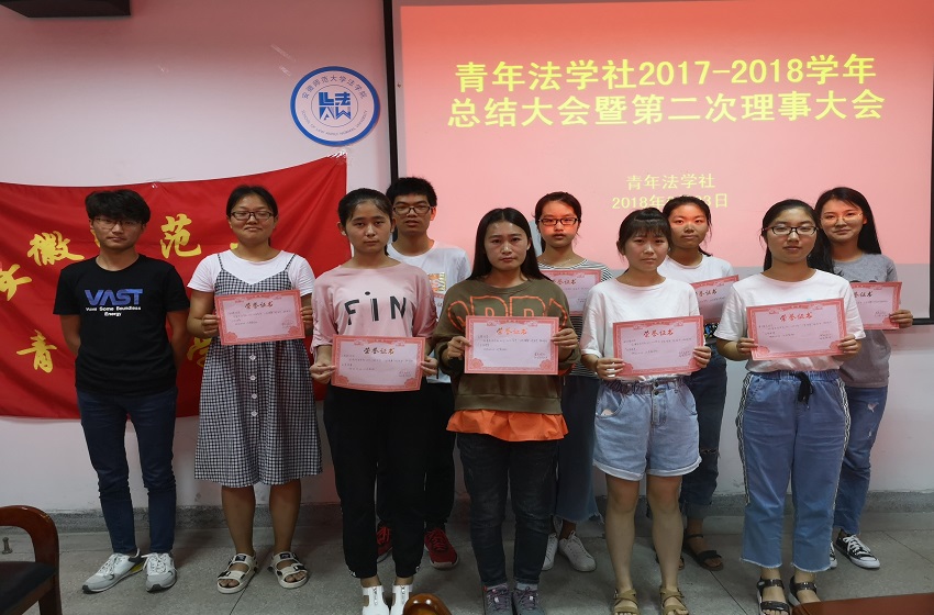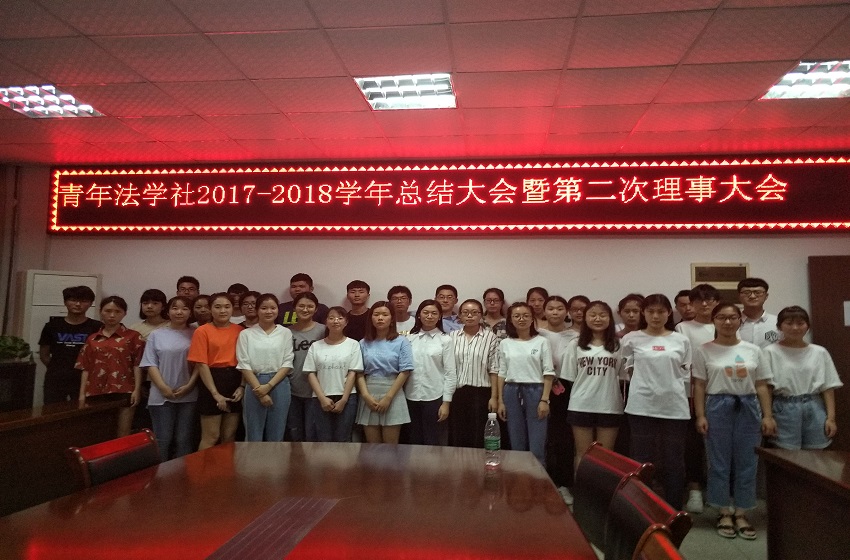 为了总结2017-2018学年青年法学社的各项工作以及对下一学年的工作作出规划,青年法学社于6月23日晚在法学院行政楼四楼会议室召开了2017-2018学年总结大会。出席本次活动的有青法社会长张楠楠,副会长郑卓、李家奇、各部门部长及理事。会议由实践部副部长章忆楠主持。