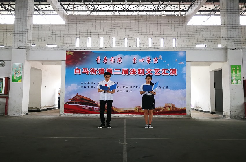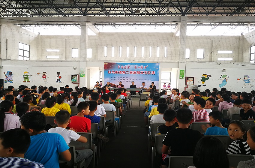 为认真落实党的十九大关于“全面推进依法治国,完善中国特色社会主义法律体系,深入开展法制宣传教育”的精神。5月30日,白马街道团工委、司法所、石硊中心学校、石硊中学与安徽师范大学青年法学社开展了亲切友好的合作,共同推进了白马街道第二届法律知识宣传文艺汇演的成功举办。
