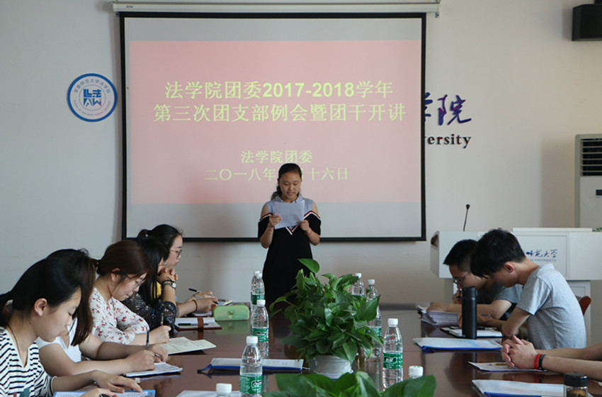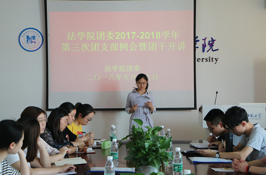 5月16日中午,法学院团委于行政楼四楼会议室召开2017-2018学年第三次团支部例会。院团委各部门成员以及16、17级团支部支委参加会议,会议由院团委组织部部长张正雪主持。