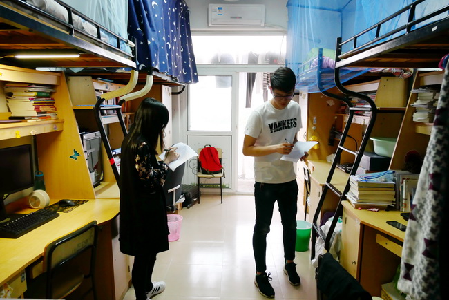 研究生会各部门分为四个小组,各自对研究生宿舍进行全面大检查。在检查过程中,各工作人员秉持公平公正公开的原则,坚持实事求是,严格按照文件要求,根据宿舍的卫生状况进行评选,重点查看宿舍是否有无违规电器、是否存在私拉电线的情况。力求做到检查全覆盖、监督要透明,不放过任何一个角落,做到检查无漏洞、用电零危险、预防全到位的格局。总体来看,大部分宿舍卫生安全良好,均为发现任何违规用电情况。但是有个别宿舍电源未关闭、插座未拔、地面脏乱等,对此,工作人员提出一些建议和意见,督促其要随时保持宿舍安全卫生,增强安全隐患意识。