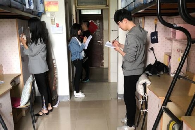 下午两点,法学院研究生会生活部全体工作人员依次对研究生宿舍49栋、48栋、3栋、7栋进行检查。在检查过程中,全体工作人员秉持公平公正公开的原则,严格遵守相关规则,对宿舍地面、门窗、床铺、卫生间、阳台、安全用电等各方面进行评分。总体来看,大部分宿舍卫生安全状况良好,工作人员对个别优秀的宿舍给予充分的肯定与赞扬,鼓励其继续保持健康向上的宿舍环境。但是也有个别寝室也存在着宿舍卫生整体状况不佳,对此,工作人员提出建议和意见,希望今后一定要改进。