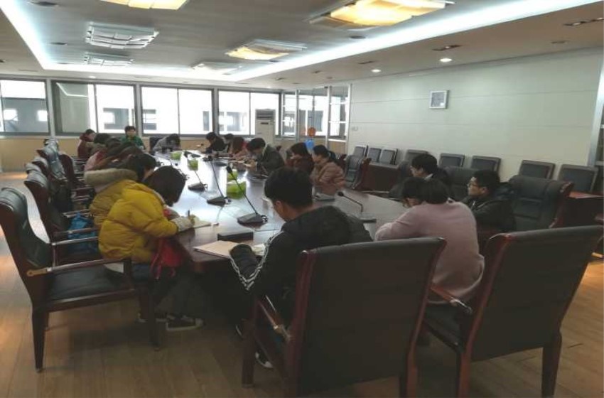 为我们介绍了镜湖区人民法院的基本情况,让我们对于接下来需要实习的环境有所了解之后,柴主任对于安徽师范大学往届实习生的表现给予了高度的评价,并指出镜湖区法院里面任职的工作人员就有许多优秀的师大学子。与此同时,作为连续五年获得“全国文明单位”和“全国优秀法院”荣誉称号的镜湖区人民法院,也对我们的实习表现提出了一定的要求。柴主任强调我们应当礼貌接待当事人,注意文明礼仪,保持环境卫生,不可随意泄露审判秘密,希望我们能够在实习中有所收获有所成长。此外,柴主任对于请销假手续,安全问题以及用餐问题都细致讲解了一番。张素风老师在柴主任讲解之外还补充了一些要求,大家都认真听讲并做了笔记。