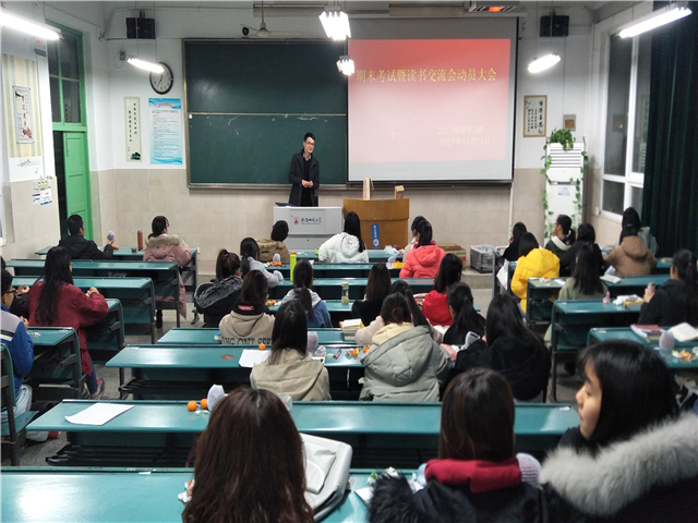 会议伊始,韩瀚就即将到来的期末考试问题向大家强调了诚信考试的重要性,并向同学们传授了一些期末备考的方法。接着韩瀚以自己的读书经历为落脚点,从阅读的重要性、阅读习惯的养成、泛读与精读三个方面和同学们分享读书经验。在读书心得交流环节中,同学们积极发言,针对自己在阅读中的困惑提出问题,与老师和同学们交流学习以解决疑惑。同时,韩瀚还为同学们介绍了学校图书馆电子资源的获取方法,告诫同学们要尊重前人们在书中总结的经验和知识。他告诉同学们,书读得多了,见解和思维自然也就开阔了。在比较了kindle和实体书各自的利弊后,韩瀚表示会在下学期为认真读书的同学购买一本纸质版的书以示奖励,这项举措充分调动了同学们的积极性。会后,同学们均表示在本次大会中受益颇多。