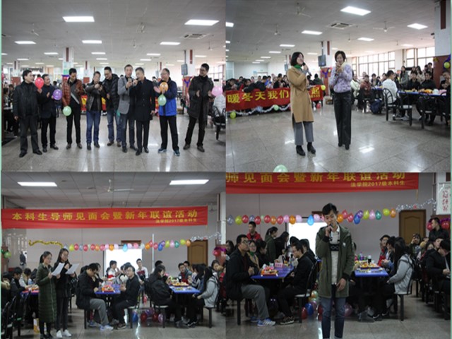 茶话节目齐上阵。导师们与多日未见的同学进行亲切地交谈,从生活、学习、期末备考等多个方面与同学们展开进一步的沟通交流。同学们或唱支深情的歌,或跳段活力四射的舞,用自己独特的方式为导师们带来了精心准备的节目。现场气氛非常融洽,老师们的情绪也受到了点燃,年轻靓丽的女老师们上台即兴演唱了《粉红色的记忆》,男老师们也不甘示弱,一曲《朋友》赢得现场一阵阵的喝彩。