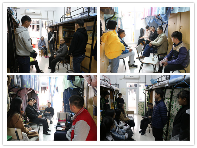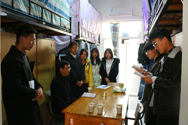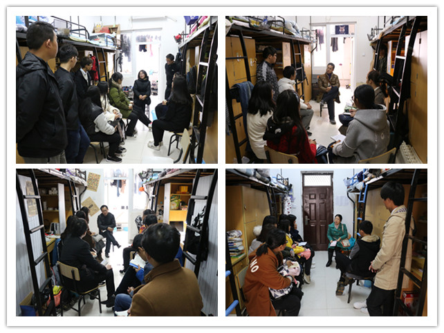12月3日下午四时许,法学院2017级的本科生同学们迎来了他们的第二次导师进寝室教育活动。陈银珠、沈向华、周新、李胜利、张素凤、张磊、陈国强、高永周、邓劲松、万尚庆、汪维才、陶东平、胡旗保、吴世林、周仁标、朱启友等16位导师等分别进入自己小组成员的宿舍,与同学们进行了亲切的会谈。