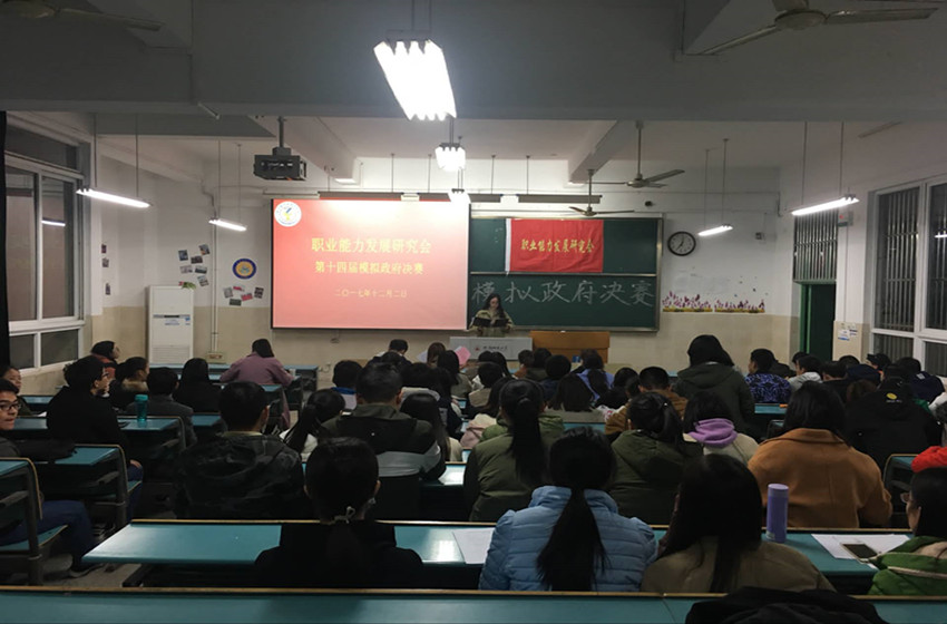 为了提高大学生对政府以及国家政策更深一步的了解,提高会员素质,培养优秀会员。12月2日晚,职业能力发展研究会在行知楼2010304教室举行了模拟政府活动的决赛。应邀出席本次决赛有青年法学社会长团代表张楠楠、外交与国际事务研究协会会长孙瑞、海星调查研究社会长梁颖、新国学社会长浦士芳、中国特色社会主义理论研究会会长俞璐、校社联评建组、参赛选手以及职研会全体工作人员。
