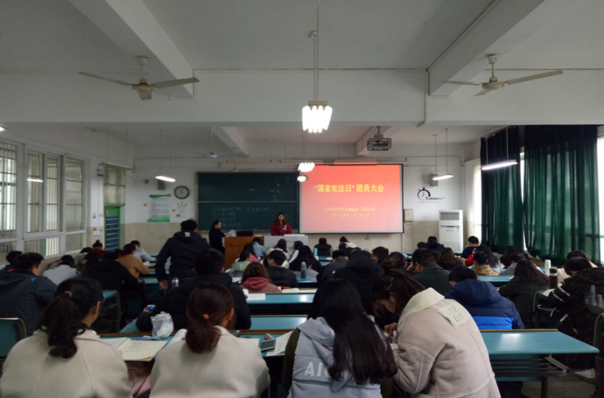 “12.4”国家宪法日来临之际,为引导同学深入学习十九大中关于全面依法治国的重要论述,加强班级团员的的宪法意识和法治观念,16级法学2班积极响应学院团委号召,于11月30日上午在行知楼2010309教室,召开以国家宪法日为主题的全体团员大会,会议由团支书张博雪主持,班级全体团员共同参加。