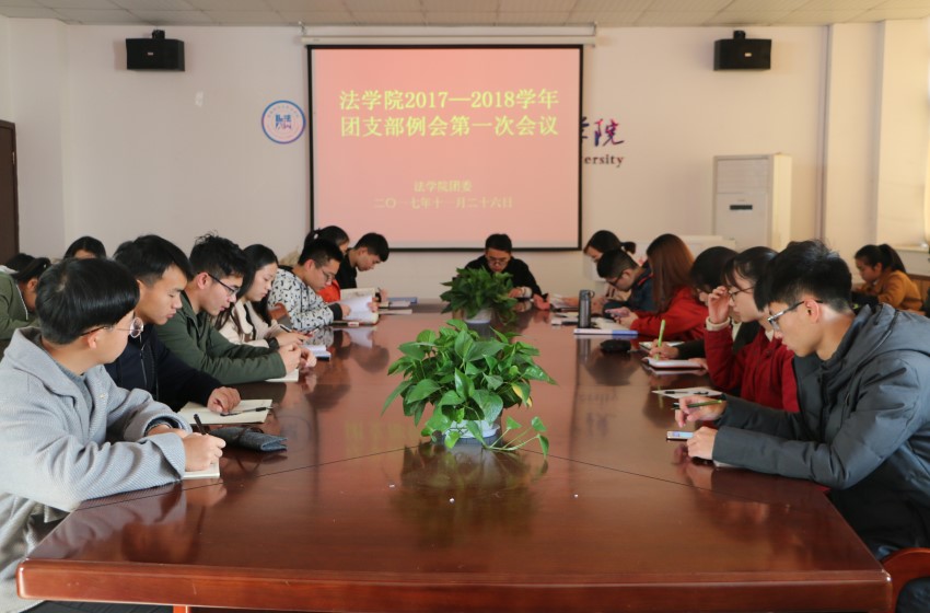 为促进我院基层团支部建设,推动团建工作稳步开展。11月26日上午,法学院团委在行政楼四楼会议室召开了2017-2018学年第一次团支部例会。会议由院团委组织部部长张正雪主持,院团委学生副书记刘闯受邀出席,院团委组织部全体成员和16、17级团支部成员参加会议。