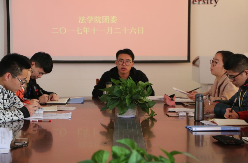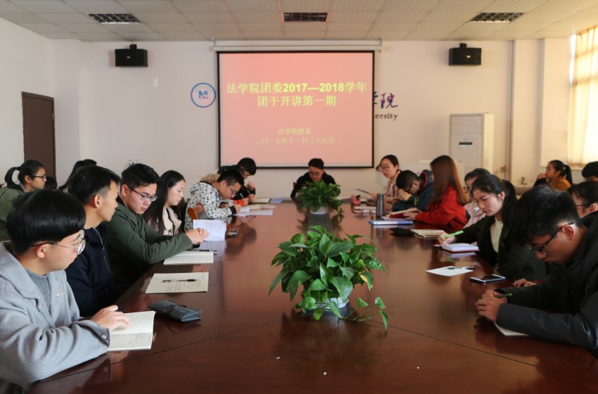 11月26日上午,法学院团委于行政楼四楼会议室举办2017-2018学年团干开讲第一期,本期团干开讲由院团委组织部部长张正雪主持,院团委学生副书记刘闯受邀出席,院团委组织部全体成员和16、17级团支部成员参加。