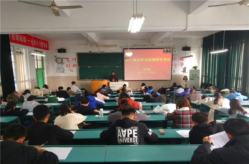 为促使学院新生尽快熟悉学校各项规章制度,了解相关奖惩措施,从而培养良好的学习习惯、生活习惯。11月25日下午,法学院新生在行知楼参与了2017级本科生校规校纪考试。本次考试由法学院辅导员和团学学生干部代表监考,2017级全体新生共同参与。法学院党委副书记屈光峰深入各考场巡视考试情况。