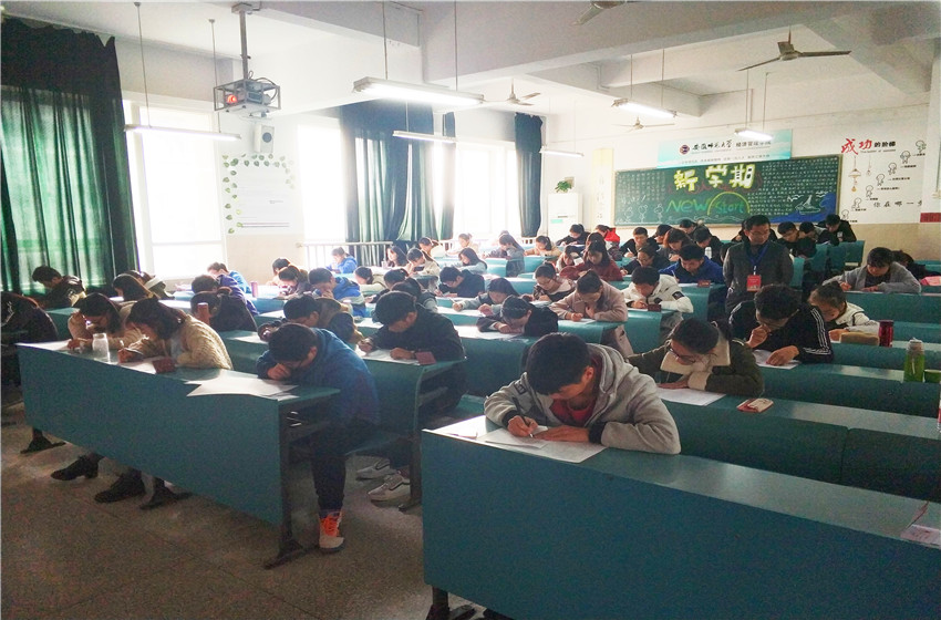 此次考试以《安徽师范大学学生手册》为基础,以校规校训、学生管理、宿舍管理、违规处理、奖助学金为主要内容,通过填空、选择、简答、案例分析的方式从多方面考察同学们对校规校纪的理解。考试过程中,全场肃静,秩序井然,只能听到一片沙沙的书写声。严肃认真的面孔下,是每位考生对考试的重视;笔转流动中,一条条校规校纪早已深入心中。