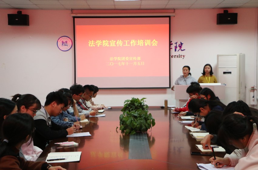 11月5日下午,法学院团委宣传部在学院行政楼四楼会议室召开了宣传工作培训会。院团委学生副书记刘闯、学生会副主席王思婷受邀出席,院团委宣传部全体成员、学生会宣传部委员、三大社团宣传部门正副部长及16、17级各班级宣传委员参加本次会议。会议由院团委宣传部部长李小平主持。