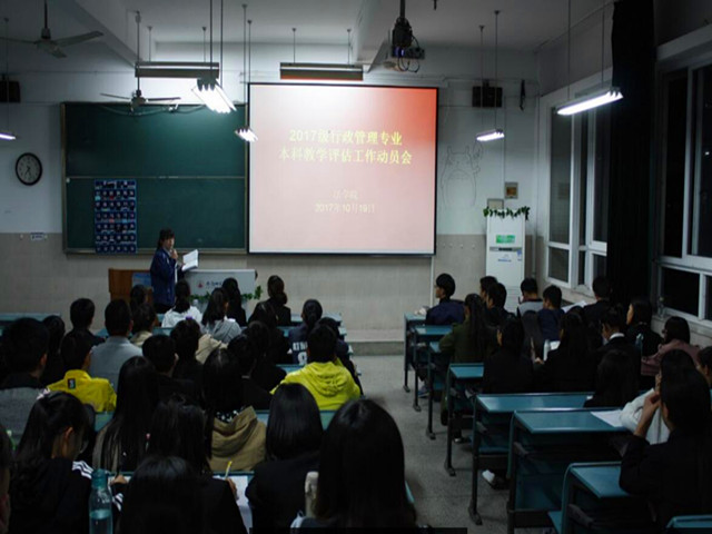 10月19日晚7点30分,法学院2017级行政管理专业于行知楼2020303教室召开本科教学工作评估动员会。会议由辅导员赵义丹主持,班级全体同学参与。