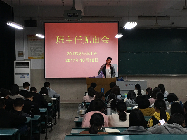 10月18日晚7:30,2017级法学一班全体同学和班主任李光宇在行知楼2020104教室举办了首次班主任见面会,见面会由辅导员陈兴宇主持。