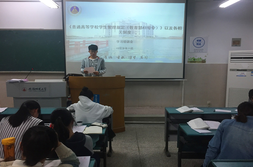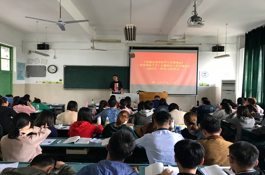 根据校文件《< 普通高等学校学生管理规定>(教育部41号令)安徽师范大学实施办法》的指示精神,15法学、16行管专业辅导员桂彬老师分别于10月19日、20日组织所管理的三个班级集体学习该文件。