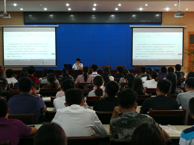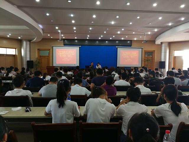 9月14日下午,学院在圆形报告厅第三报告厅召开新生校规校纪专题教育活动,由辅导员陈兴宇、赵义丹主持,2017级全体同学参加。