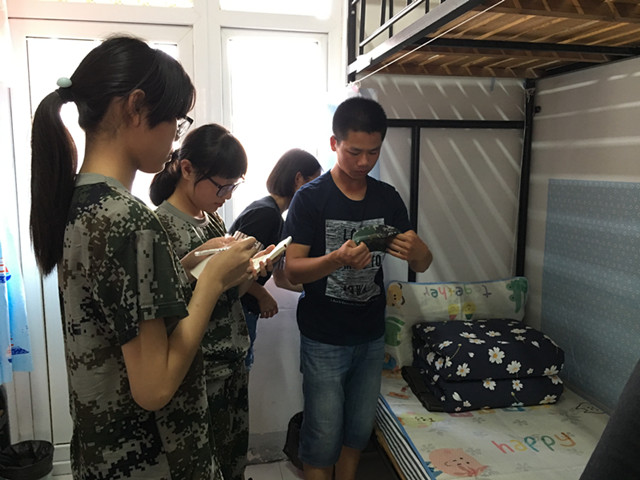 根据学校军训工作统一安排,9月18—19日为内务整理训练。军训教官根据学校军训内务整理标准要求,对2017级新生内务整理进行训练,主要分现场教学、分类指导、检查整改、统一检查4个阶段进行。