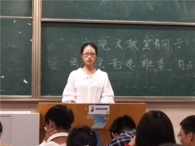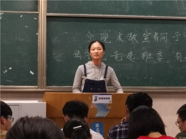 9月30日晚上7:30,在辅导员陈兴宇的组织下,法学专业于行知楼召开了第一届班委竞选活动。参加活动的除法学院全体新生外,还有受邀担任检票员与唱票员的10位行管专业的同学。