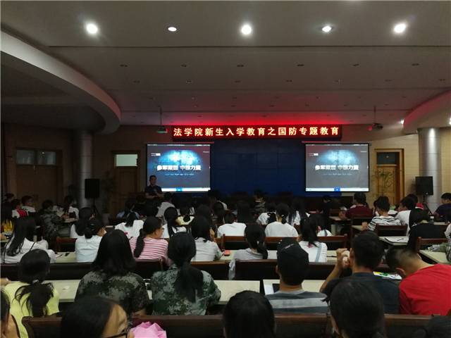 新生军训结束前夕,根据学院《法学院2017级军训早操与晚间活动计划报表》工作安排,在辅导员陈兴宇、赵义丹的精心安排与组织下,学院2017级全体学生在第三报告厅参加了新生国防专题教育会。