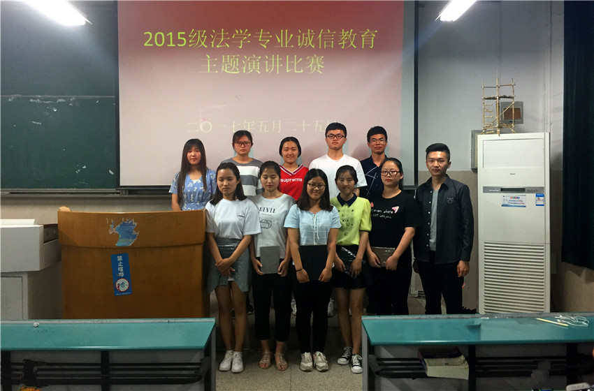根据教育厅《关于开展2017年学生资助诚信教育主题月活动的通知》文件精神以及我校《关于做好我校学生资助诚信教育主题月活动的通知》,5月25日晚7点半,2015级法学专业于行知楼固定教室开展诚信教育主题演讲比赛,辅导员桂彬到场观赛。