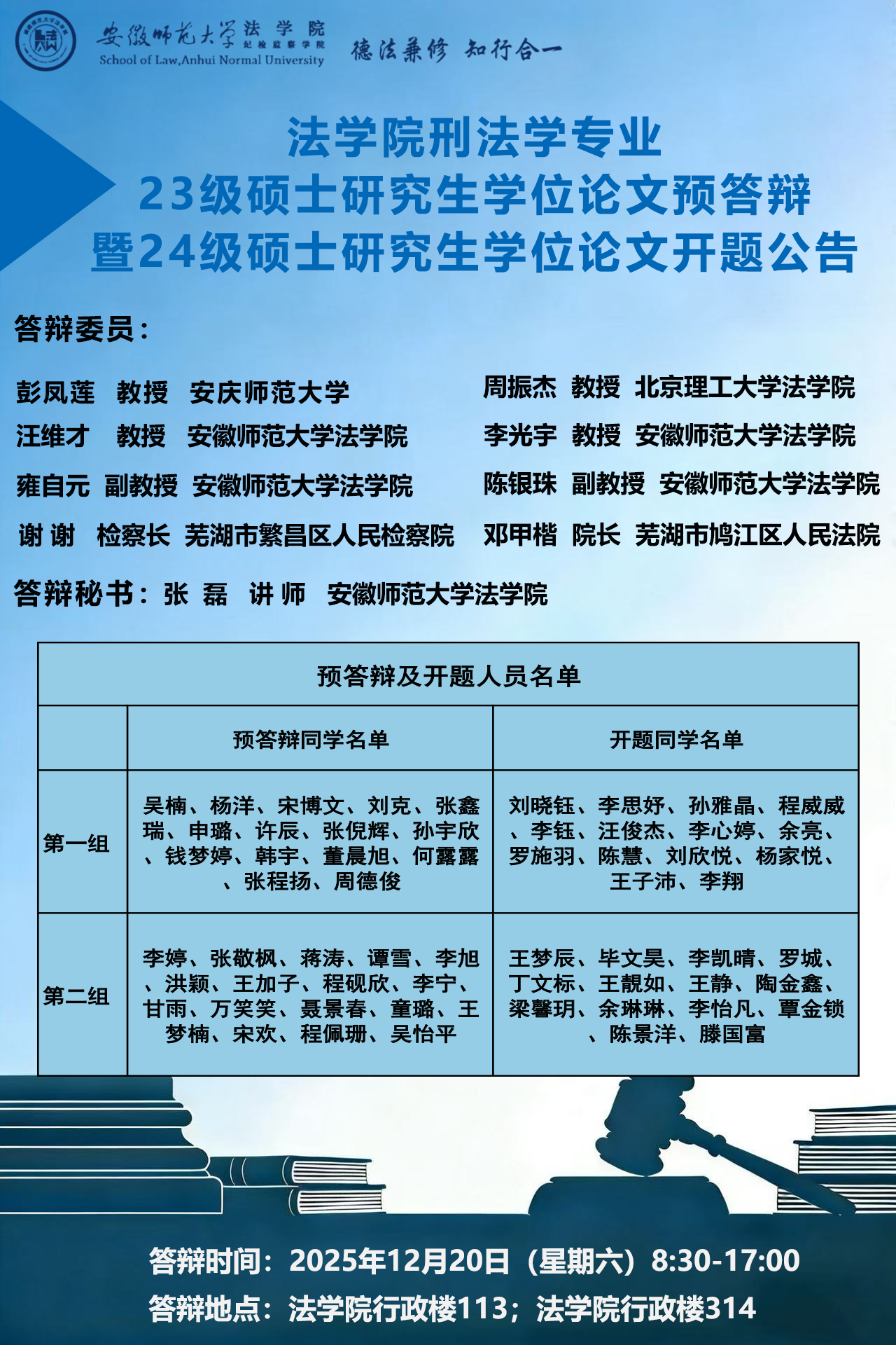 刑法学2023级硕士学位论文预答辩暨2024级硕士学位论文开题公告