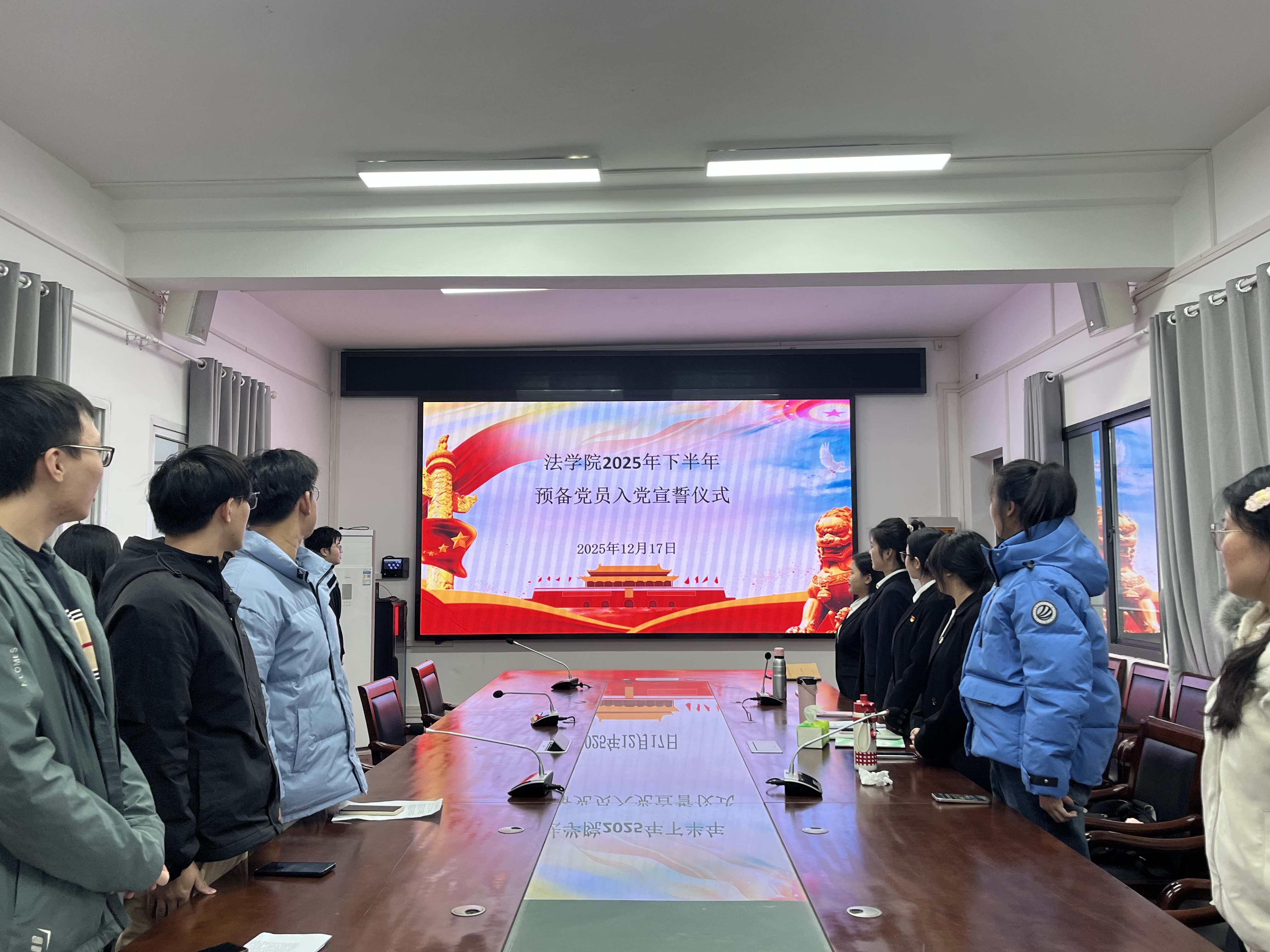 12月17日下午,法学院本科生第三党支部在法学院行政楼515会议室举行2025年下半年预备党员入党宣誓仪式。院党委委员、副院长陈爱如出席仪式,支部新发展党员共8名参加。仪式由党支部宣传委员王冰凡主持。